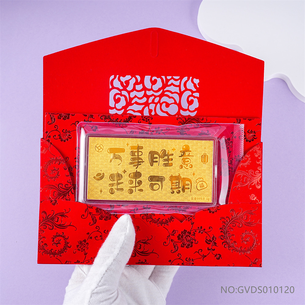 足金999.9平面金钞1G万事胜意未来可期黄金金钞(含红包和亚克力盒)