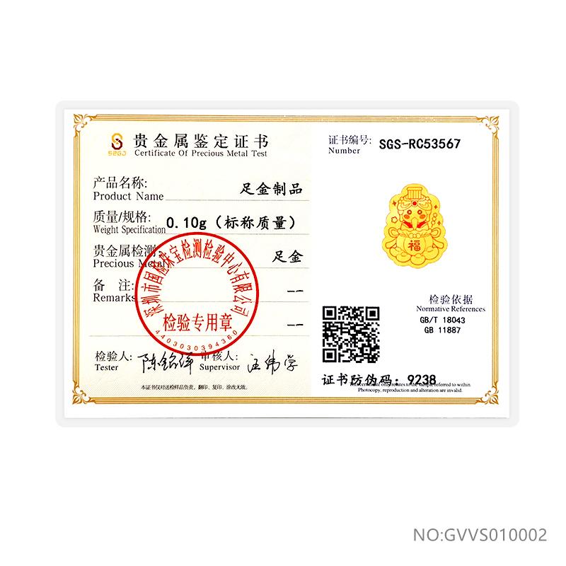 【专利】足金999.9福星高照妈祖彩色手机贴约0.1G(含证书亚克力包装盒)