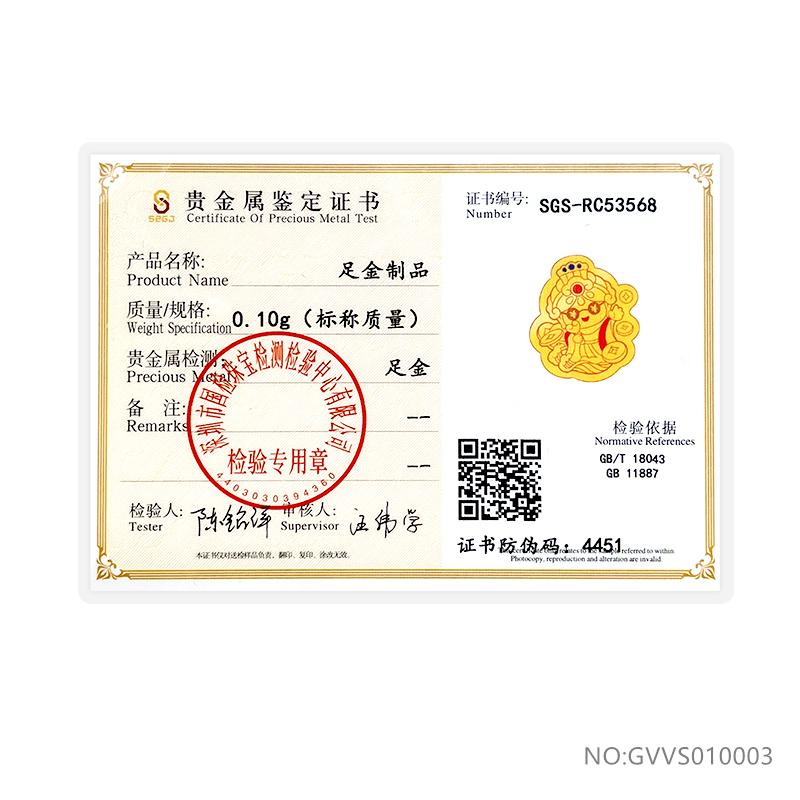 【专利】足金999.9财源广进妈祖彩色手机贴约0.1G(含证书亚克力包装盒)