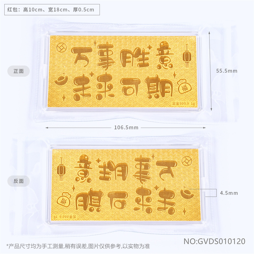 足金999.9平面金钞1G万事胜意未来可期黄金金钞(含红包和亚克力盒)